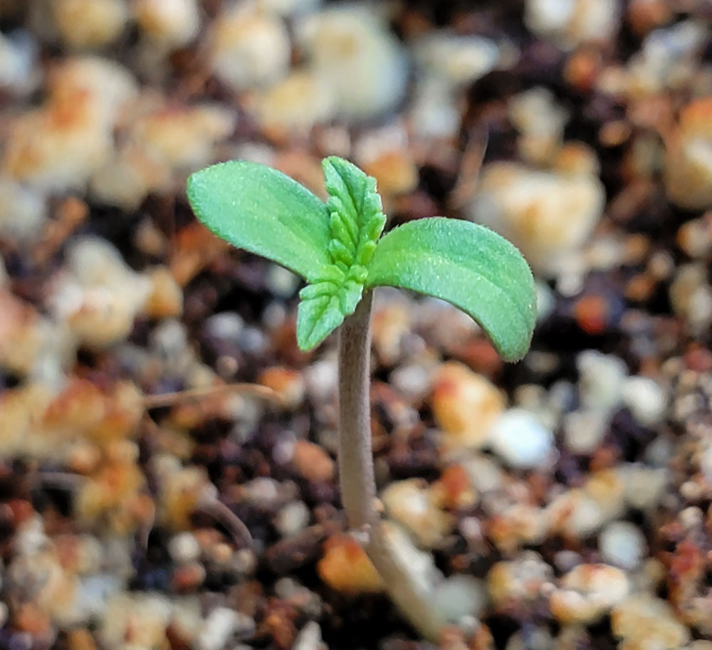 "Strong start" cannabis seedlings look about like this at 3 weeks.